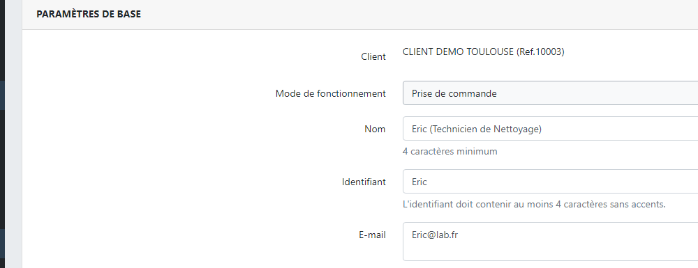 - Renseignez les identifiants basiques pour les 3 (ici nous ne montrons qu'un exemple) Nous mettons aussi le titre du poste purement dans notre exemple, vous êtes libre de ne pas l'écrire.