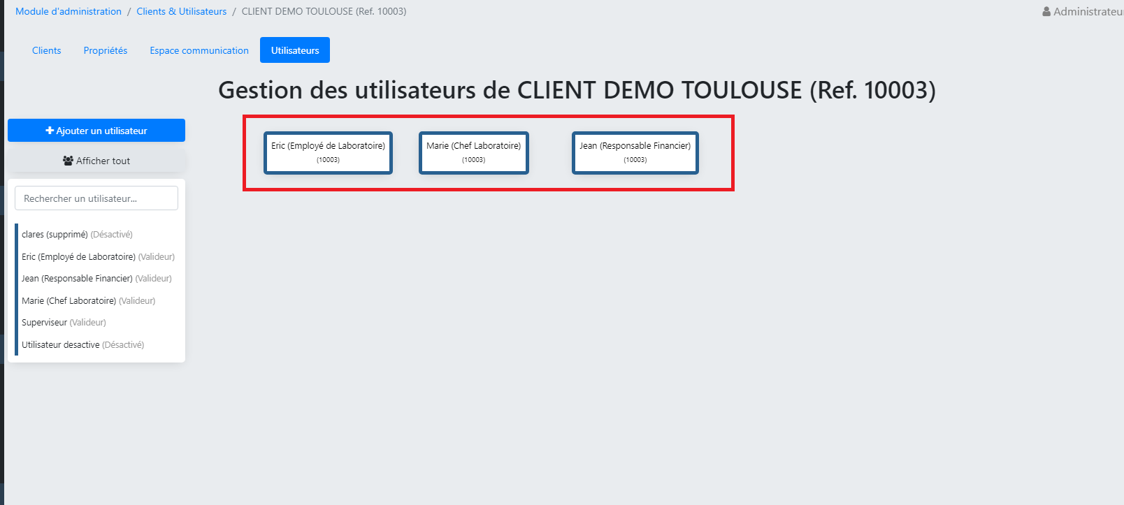 Nous allons donc créer pour chacun un utilisateur avec sa liaison hiérarchique en conséquence.