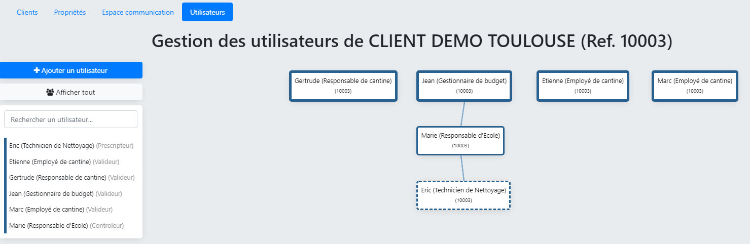 Pour rappel : Gertrude dans notre exemple va avoir comme Employé UNIQUEMENT Marc, elle va aussi être indépendante de Marie, mais soumet toute commande pour validation à Jean.