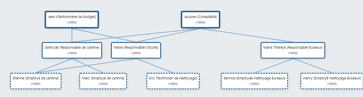 Ici nous allons reprendre notre exemple de hiérarchie avec plus de valideurs/prescripteurs/contrôleurs