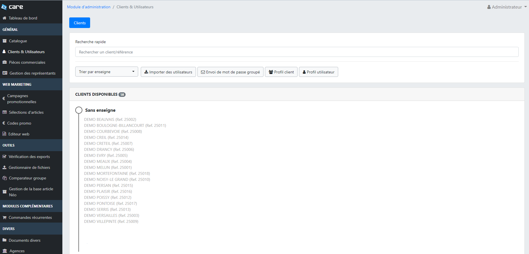 - Allez dans : Clients et utilisateurs en haut à gauche dans l'interface d'administration