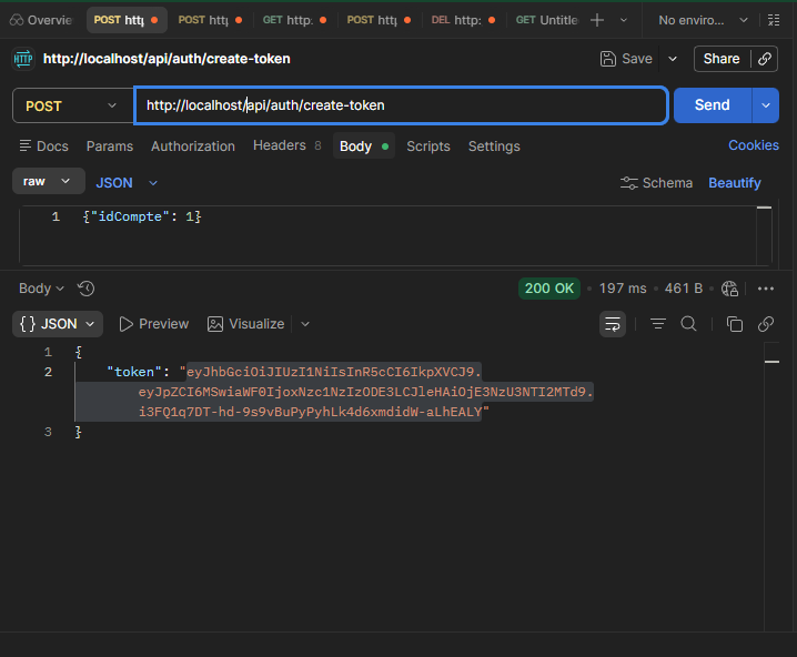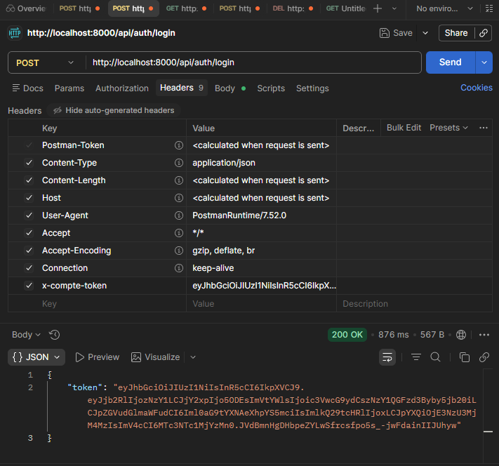 cette manipulation est a faire une fois , puis il faut simplement copié le token utilisateur généré au login dans chaque requete sur une route protégéé comme on a vu précédemment.