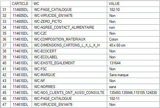 Contient toutes les champs complémentaires de la table WC_ART dont le nom du champ commence par "WC-".